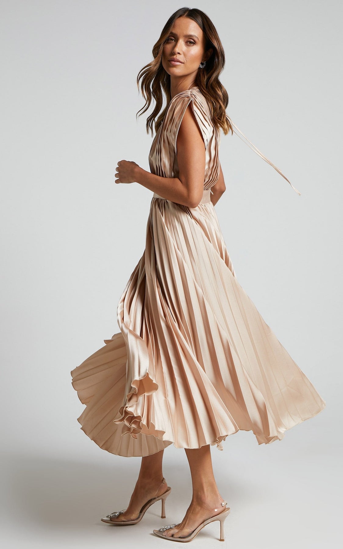 Make every moment unforgettable in the Madisyn Flowy V-Neck Pleated Skirt Dress. Designed to highlight your silhouette, its V-neckline and umbrella pleats create a graceful, feminine look. Lightweight and easy to care for, this dress is perfect for parties, dates, or any special occasion. Pair it with your favorite accessories for a show-stopping ensemble.
